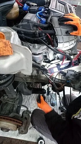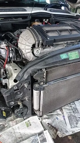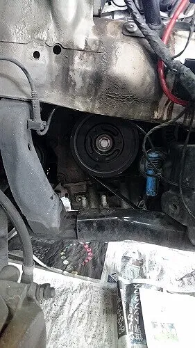 オルタネーターを始め、不調を疑う箇所の確認などまずはそれらを始める前に脱着作業が多くございますので診断、作業等を始めれる状態にいたします。