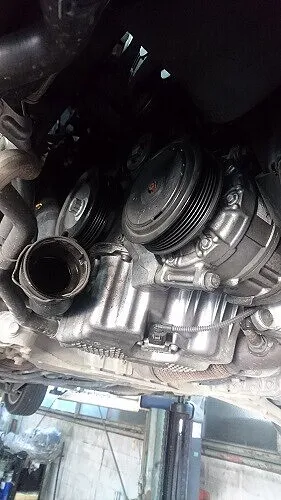 アウディA4 水漏れ整備修理、ウォーターポンプ交換へ