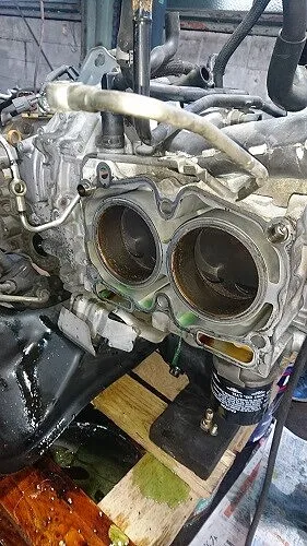 そして、左右バンクのシリンダヘッドを取り外します。
