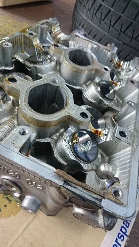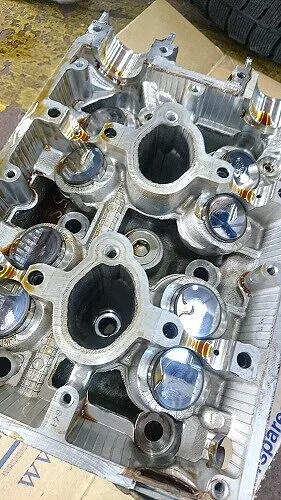 取り外したシリンダーヘッドは専門業者に依頼しましてヘッドの歪がないかの点検後、0.01m/m単位の水平研磨をして頂いてバルブシールからシムに至るまで総交換調整をいたします。