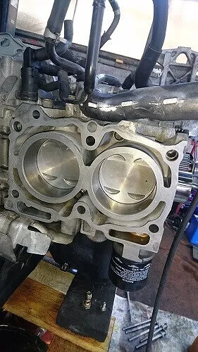 エンジンヘッドに関してはシリンダーヘッドの研磨等の作業が出来上がるまでオイルストーンなどで平面部はより綺麗に、またピストンやシリンダー壁なども綺麗にして出来上がりました研磨調整後のシリンダヘッドと組み合わせてゆきます。