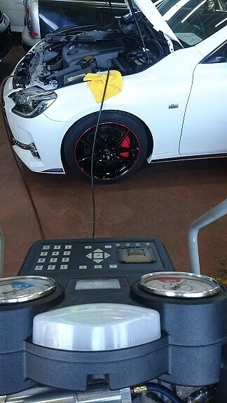 今回はエアコンメンテナンスとしてボッシュ製エアコンメンテナンスクリーニング機器にてエアコン総チェックから充填ガスが適正量入っているかの診断点検とワコーズから出ているエアコンクール+添加剤の充填のご依頼です。