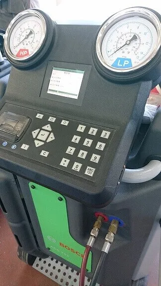 フロンガスという目に見えないものだけにやはり適正にエアコンフロンガス回収、充填、他機能チェックやクリーニングなど行えるボッシュの専用エアコンクリーニング、メンテナンス機器を用いて行っております。