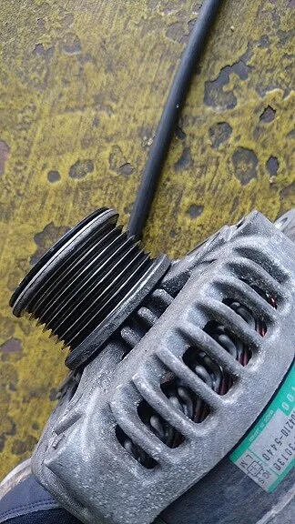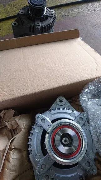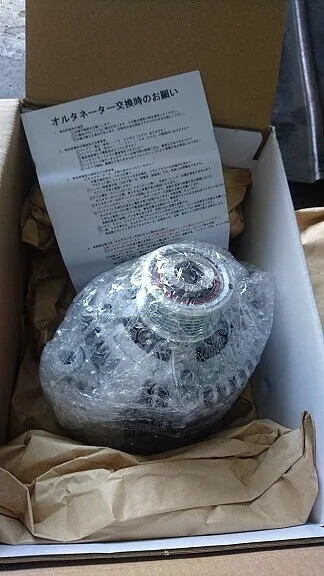 純正部品でなく使用者様とご相談の上、優良リビルト製品、オルタネーターを手配しましてドライブベルトと合わせて交換作業を行いました。