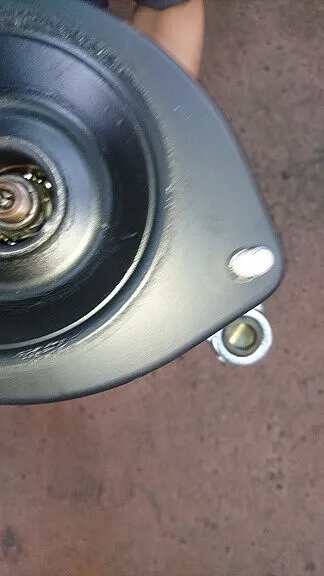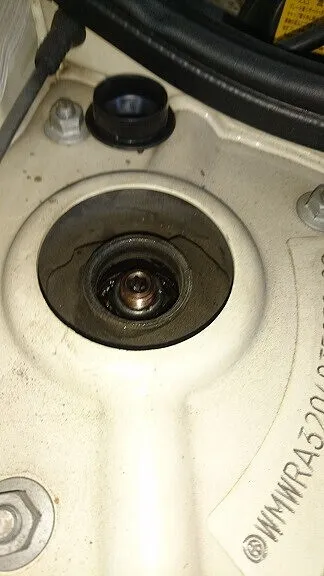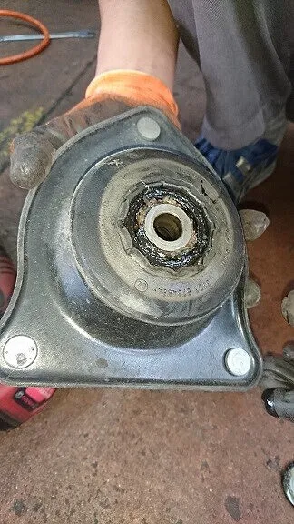 音を辿り足回りをよくよく調べますとストラットのアッパーマウントがパックリ、ポッカリとラバー部が切れてハンドルを揺すると中でこ擦れながら不整な動きしています。