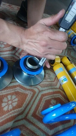 ストラット、脱着分解にてアッパーマウントやそれにかかわる部品交換です。