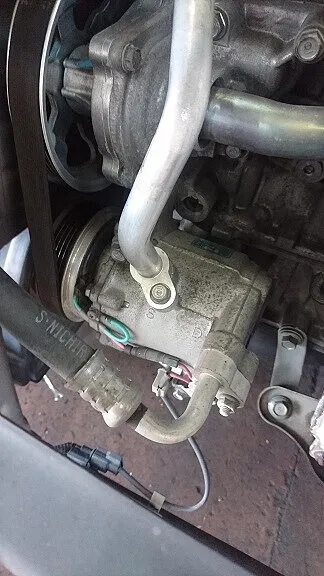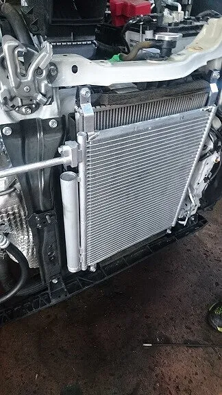 まずはエアコン診断機器によりフロンガス量の状態やエアコンに関わる各機構の診断を進めましたところACコンプレッサーの調子が不良であることとACレシーバーにかかわるコンデンサーも同時に交換と判断させて頂き、使用様のご了解の元整備修理を始めさせて頂きました。