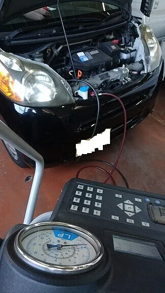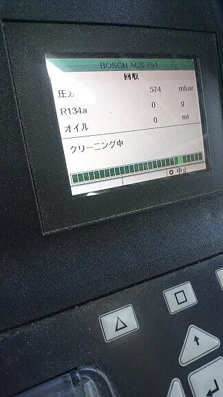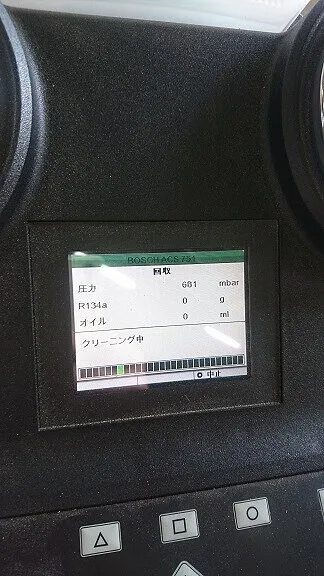 前置きが長くなりましたが今回も専用機器を使いクリーニングモードからの新規ガスを規定量の充填を行いました。