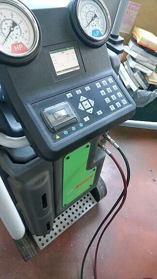 規定のフロンガス量やコンプレッサーオイル量も合わせ、クリーニングも行いきちんと専用のボッシュ・エアコンクリーニング充填機器を用いて行います。