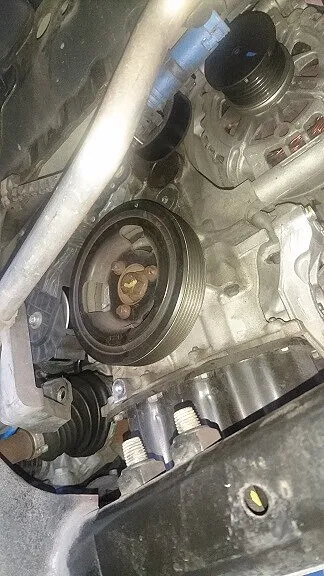 アウディA4 水漏れ整備修理、ウォーターポンプ交換へ
