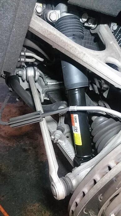 半田市 シヴォレー・コルベット リア、アブソーバー(左右)交換作業 Bosch Car Service 巽自動車