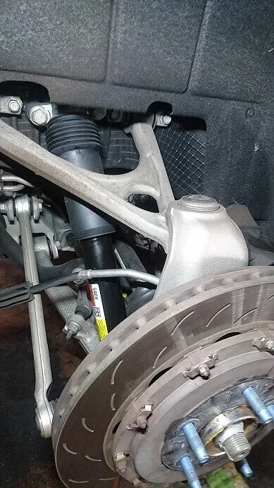 コルベット、リア、アブソーバーの油圧のオイル漏れにて交換の作業を行わせて頂きました。