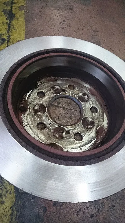 フロントブレーキディスクローター取り外した所、裏面はこのような感じになっております。