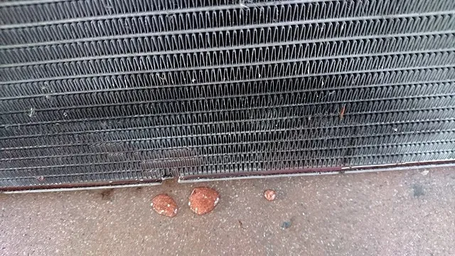 フロントバンパー裏より目視で分かる範囲の冷却水の滲み漏れが有ります。