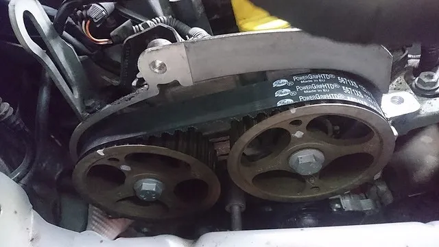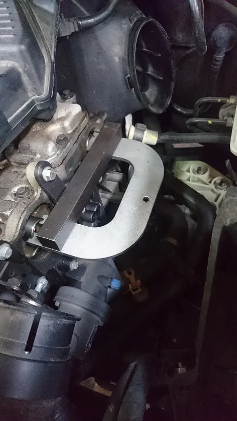 専用SSTを用いて圧縮上死点を確認、そして、位置固定し、ベルト脱着、ウォーターポンプも交換、テンショナーやシールも交換を進めます。