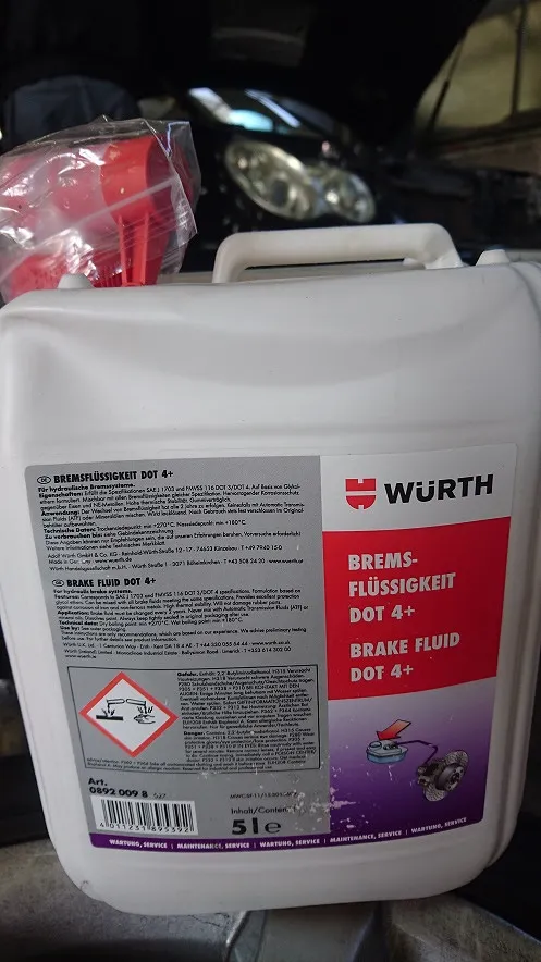 使用ブレーキフルードはメルセデス専用、ウルト社製、DOT4+です。