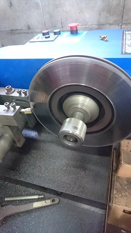 自社にて自動車専用ディスクローター研磨機で研磨調整いたします。