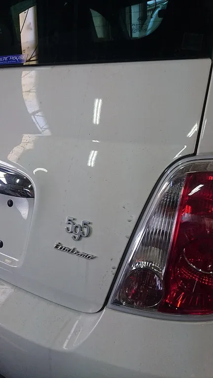 フィアット500 車検整備&外装モール、エンブレム劣化取り換え作業含み