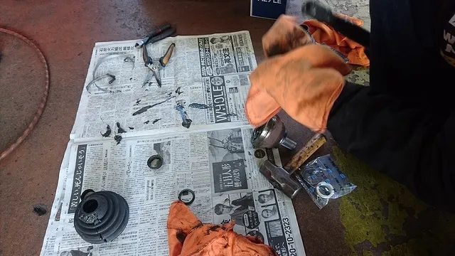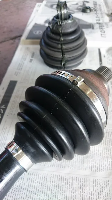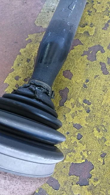 ドライブシャフトブーツ劣化、割れにより内部からグリスが漏れ出しております。