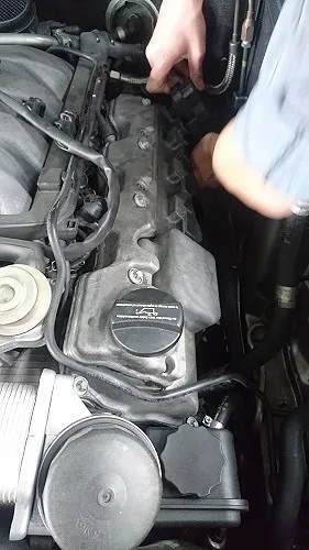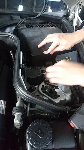 BMW118i 車検整備作業(ブレーキフルードAte、スパークプラグ、ファン(ドライブ)ベルト交換など