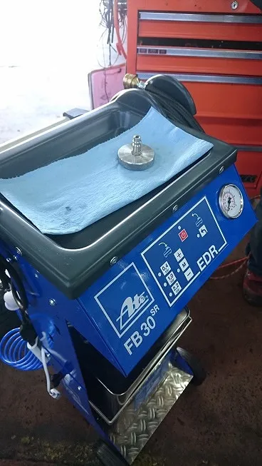 ブレーキフルード圧送入替交換(Ate社製 輸入車対応ブレーキフルード圧送機器)