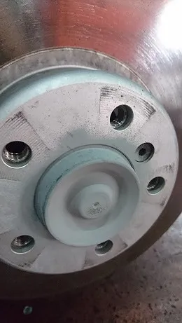 ブレーキ分解、清掃、シムグリス散布等を行い、センターハブ錆落とし&防腐パスター散布です。