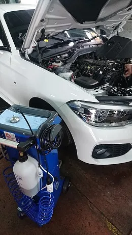 BMW118i 車検整備作業(ブレーキフルードAte、スパークプラグ、ファン(ドライブ)ベルト交換など