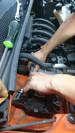 BMW118i 車検整備作業(ブレーキフルードAte、スパークプラグ、ファン(ドライブ)ベルト交換など