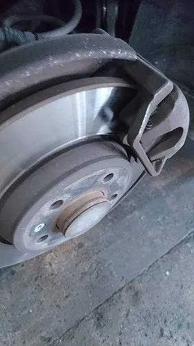 目視でもブレーキパッドの残量は確認出来ますが裏側のブレーキパッドは外してみないと実際の残厚や状態はわからない事も多いです。