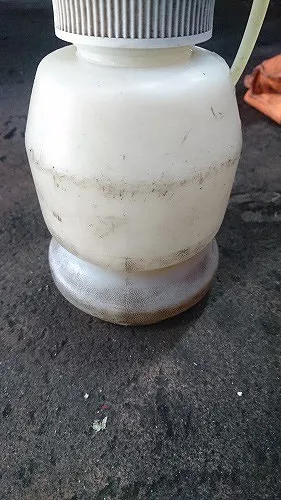 焼けて変色しましたブレーキフルードが排出されてきました。