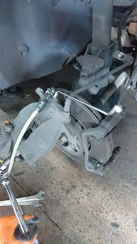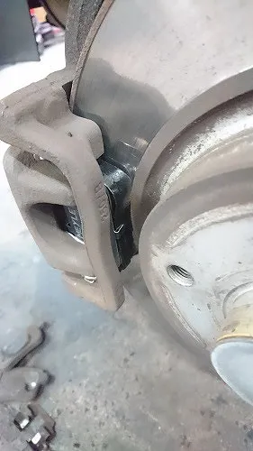 ブレーキパッドの残量がほぼ、ありませんでしたのその旨、お客様にお伝え、取替の了解を頂きまして分解、清掃、全ブレーキパッド交換、調整をいたします。