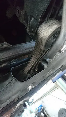 エンジン下側をささえるマウントもラバーブッシュ部分不良でその役目を果たしておりません。