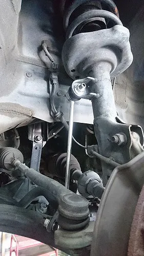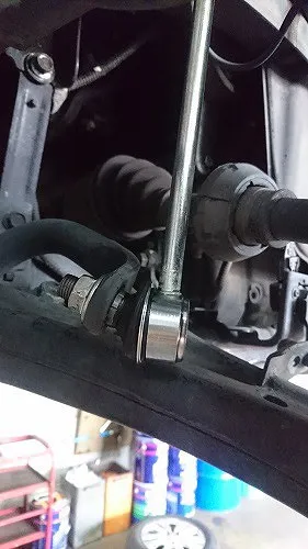 フロントのスタビリンクロッドのジョイント部、割れなど検査NGとなる為、左右共の交換へ。