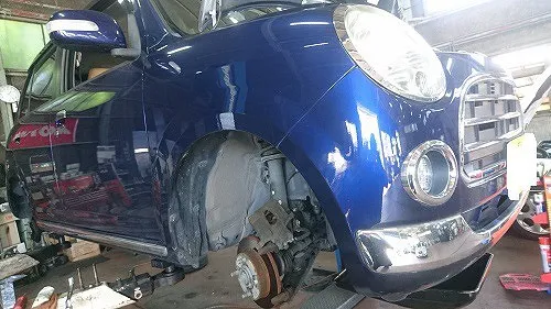 ご紹介でご入庫頂きましたスズキ・パレットの車検整備作業でございます。