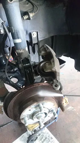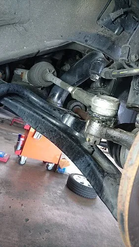 操舵に関わる箇所ですし、なによりこれでは車検はNGになりますので整備作業させて頂きました。