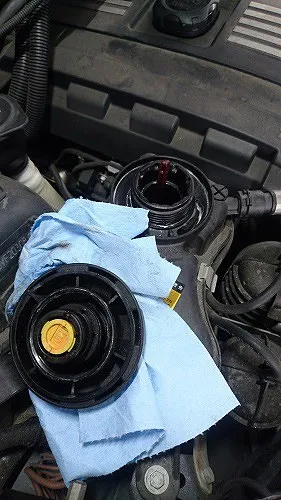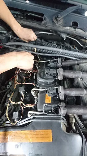 BMW118i 車検整備作業(ブレーキフルードAte、スパークプラグ、ファン(ドライブ)ベルト交換など