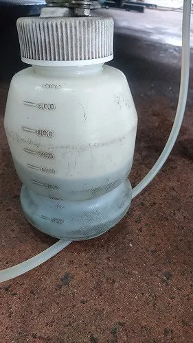 古いブレーキフルードはかなりの汚れ具合です。