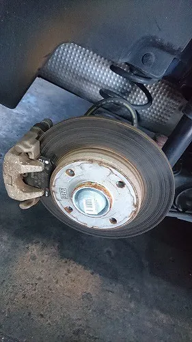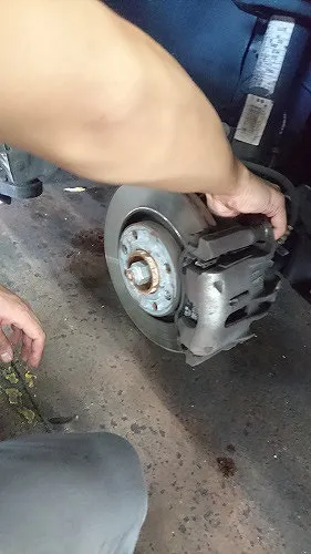 リフトに乗せ、タイヤを取外しブレーキ回りの整備を始めましょう。