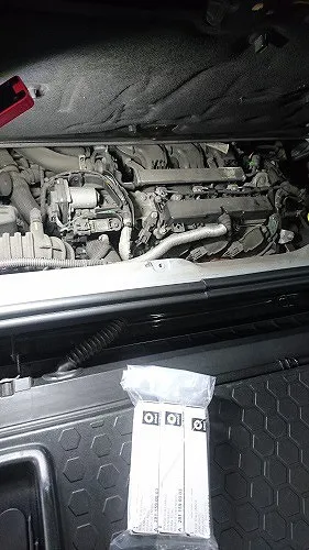 ボルボV40T4(MB4164T)車検整備です。エンジンオイル、ブレーキフルード、タイヤ交換、バッテリー交換等々。
