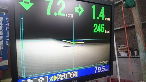 ヘッドランプ光軸なども自社完備の画像解析式ヘッドランプテスター(HID,LEDライトにも対応)にて点検光軸調整を行います。