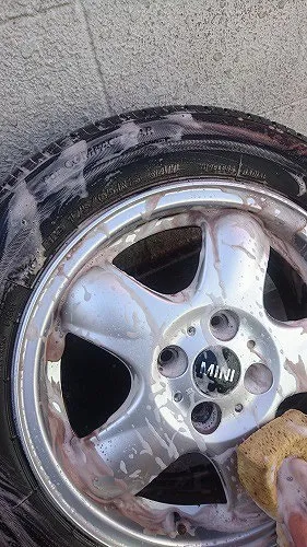 まずは整備でタイヤを取り外しておりますのでタイヤのエア圧点検と外観チェックを済ませたらタイヤ&アルミホイールを綺麗に洗浄しておきます。