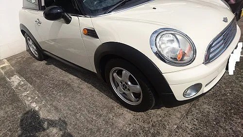納車前にに洗車、室内清掃を行いました。MINI系のアーチモール周りの黒樹脂パーツも白く色褪せいたしておりましたので当方で洗車時に磨き&艶出し処理を行わせて頂きました。