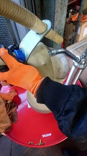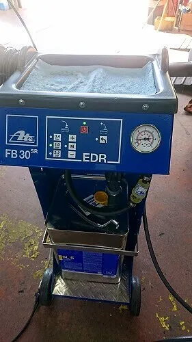 後方では車検毎に必ずブレーキフルードの交換入替をお願い、作業させて頂いております。