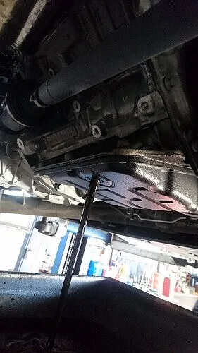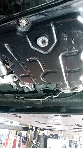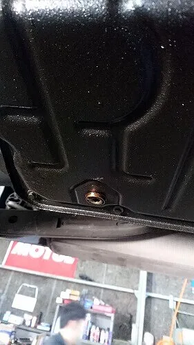オイルドレンのワッシャーにキズが入っており、オイルパン回りは沁み漏れだらけの状態でしたので新しいワッシャーへの交換、適正トルクでのドレン締め付けを行いました。
