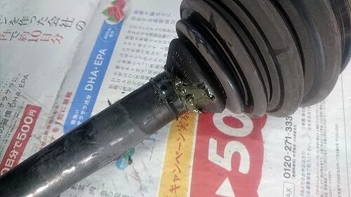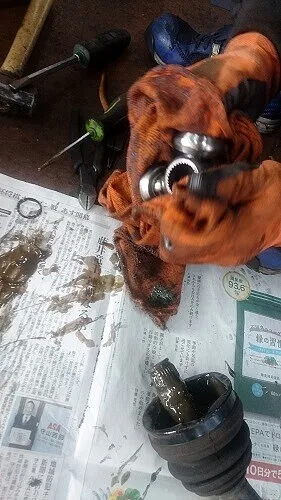 フロントドライブシャフトブーツよりグリス漏れ、ブーツ破れがありましたのでお客様にご報告し、ブーツ交換、グリス入替の作業を行わせて頂きました。