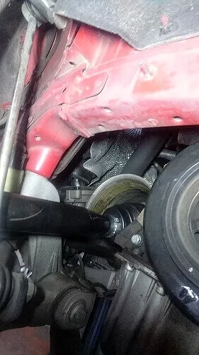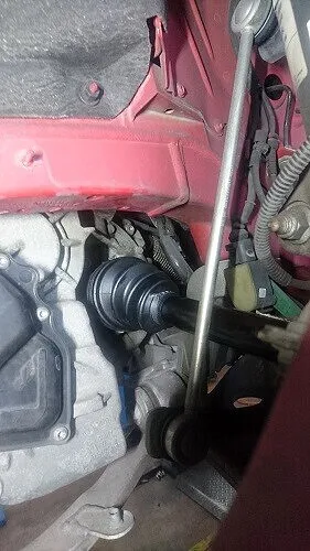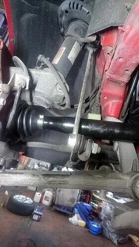 新しいブーツへ交換が完了したドライブシャフトを元の位置へしっかりと組み戻します。