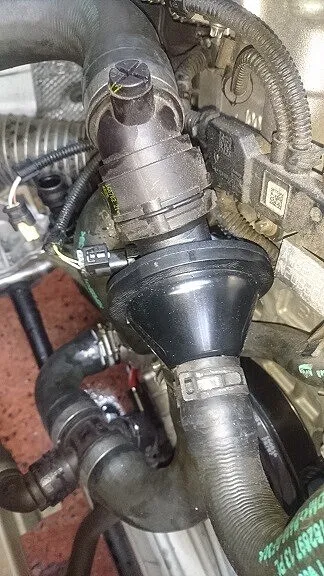 あとは冷却水(欧州アンチフリーズタイプ)を充填エア抜きをしっかり行い、取付箇所の漏れはないか、入力されていたエラーをクリアしましてオーバーヒートの警告が表示されないかを確認しまして完了となります。