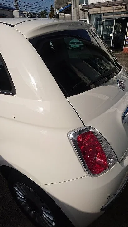 フィアット500 車検整備&外装モール、エンブレム劣化取り換え作業含み