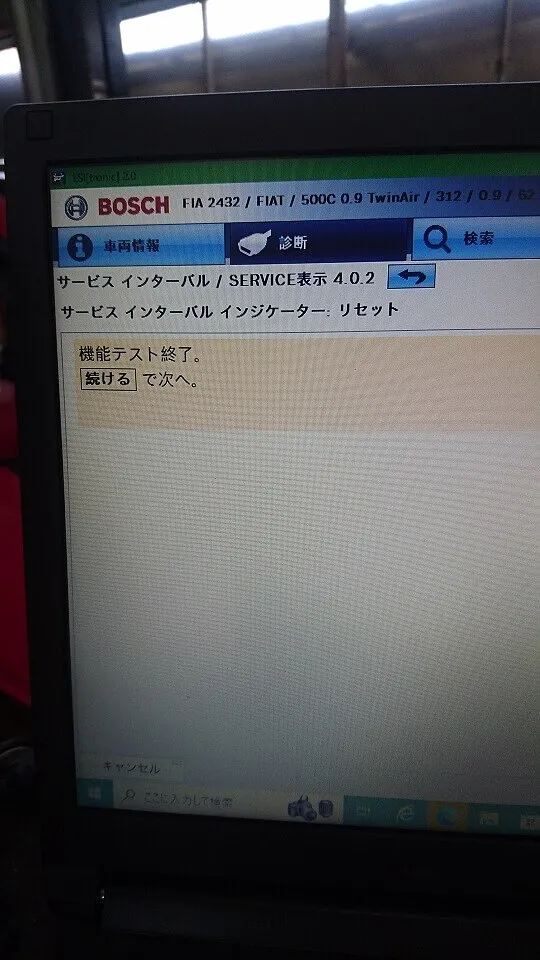 ボッシュ診断機によるショートテスト&メンテナンスリセット実行