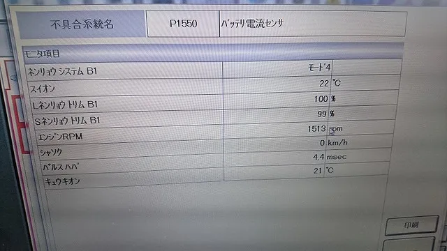 バッテリー系統に異常を知らせるコードが入っていました。
